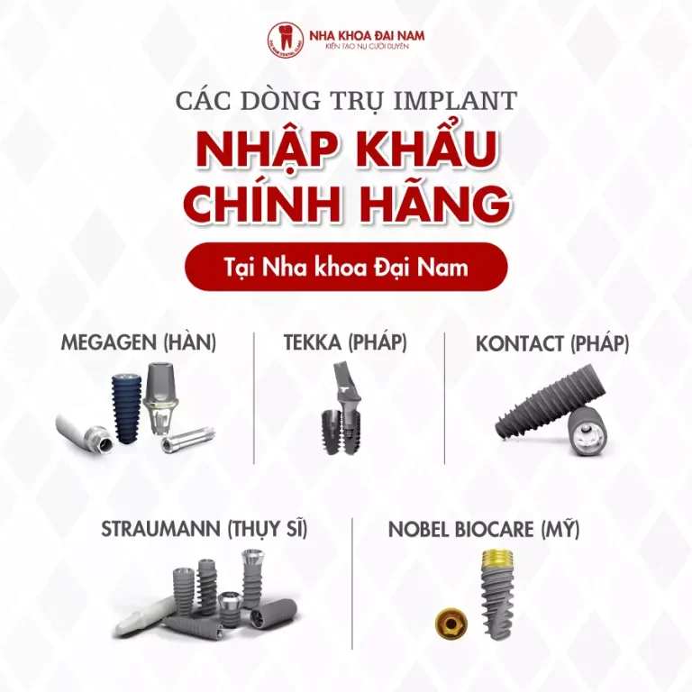 Tất cả các trụ Implant tại Nha khoa Đại Nam được nhập khẩu chính hãng từ các thương hiệu uy tín quốc tế, đảm bảo chất lượng vượt trội, bảo hành lên đến trọn đời. Bên cạnh đó, Nha khoa Đại Nam còn hỗ trợ thanh toán trả góp 0% lãi suất, giúp giảm bớt gánh nặng tài chính cho khách hàng.